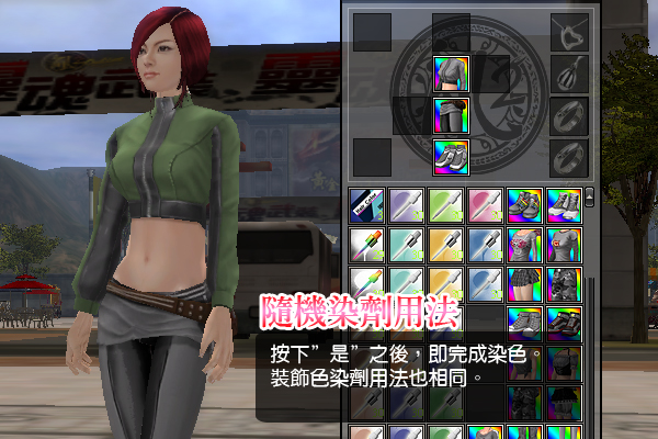 | 功能 | 使用1次可以重新變更服飾能力種類。 | 分為主色和裝飾色兩種,使用1次可變更成指定顏色。有18種顏色可供選擇。 | 分為主色和裝飾色兩種,使用1次系統隨機變換主色或裝飾色的顏色。 |